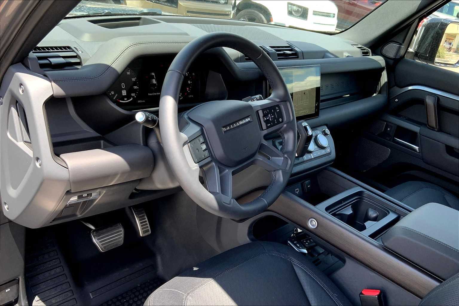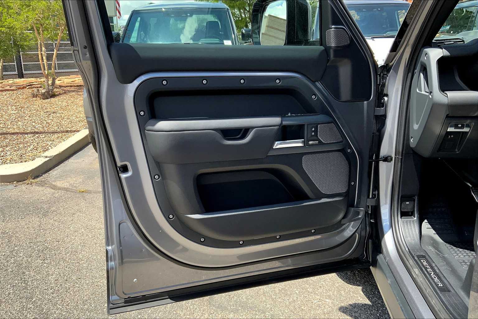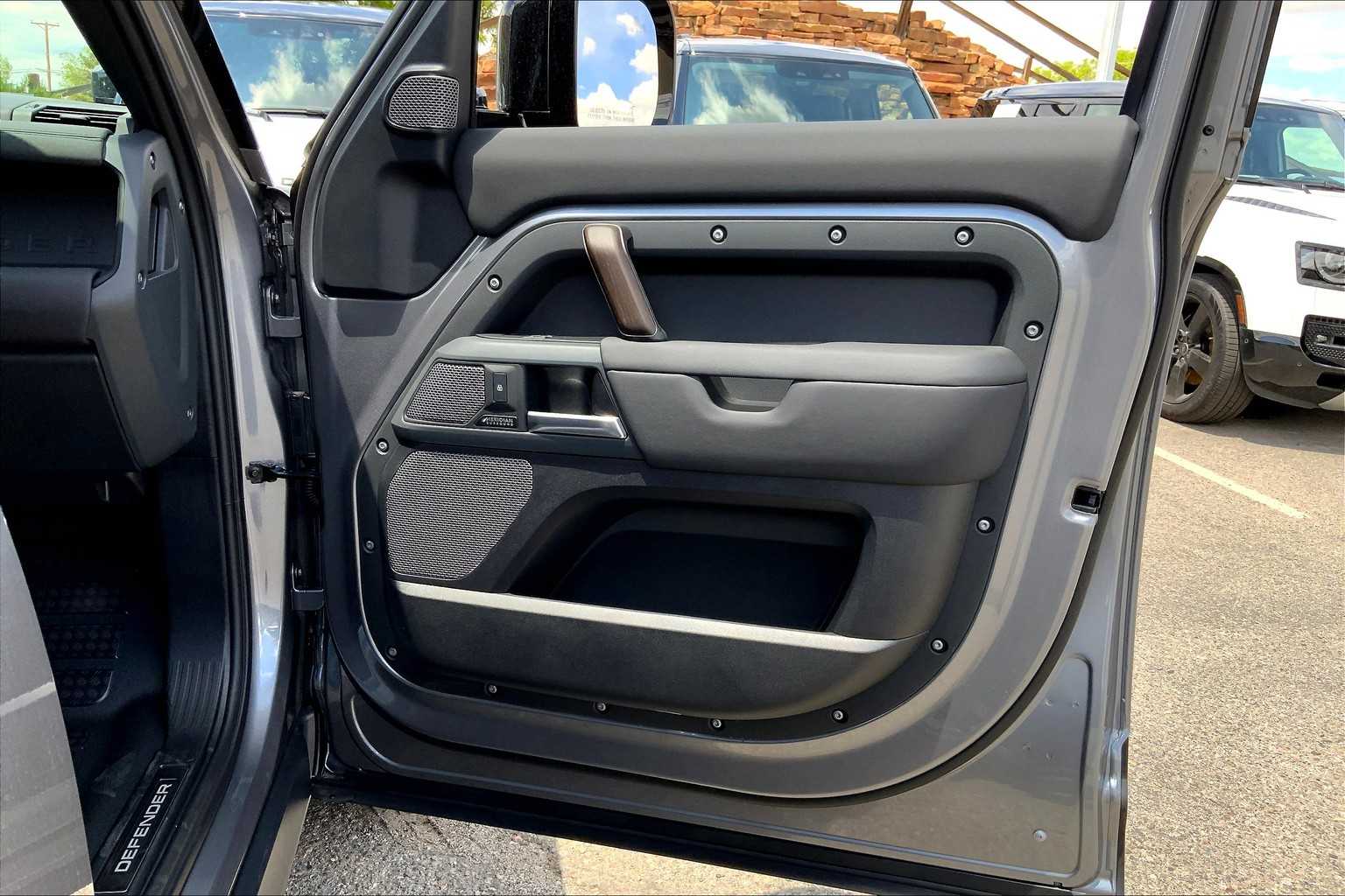 5 spoke, Tires: 22 All Season, gloss black fender vents, Narvik black hood checkerplate, gloss black Defender script and Narvik black front and rear skidpans, Gloss Black Front Grille, Tow Hitch Receiver, Advanced Tow Assist, Refrigerated Center Console, Premium Cabin Lighting, deep-sided rubber mats, loadspace rubber mat and cargo carrier, FRONT UNDERSHIELD, 3-ZONE CLIMATE CONTROL, BODY COLORED SPARE WHEEL COVER, CABIN AIR PURIFICATION PLUS, WI-FI ENABLED W/DATA PLAN, DINAMICA WRAPPED STEERING WHEEL, BLACK EXPOSED REAR RECOVERY EYES, silver wheel locks and valve caps, BLACK CONTRAST SIGNATURE GRAPHIC, AIR QUALITY SENSOR, EIGER GREY METALLIC, EBONY/EBONY, RESIST & ROBUSTEC SEATS, subwoofer, Bluetooth connectivity, voice control, Sirius XM satellite radio and HD Radio, PIVI Pro, Android Auto, Apple CarPlay, wireless device charging, remote, connected navigation pro and online pack w/data plan.