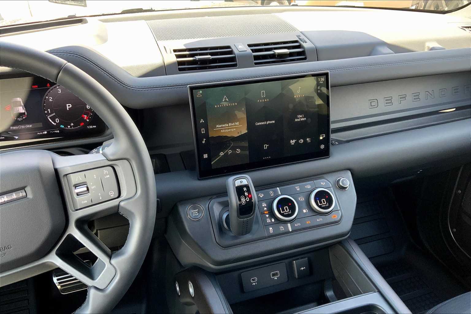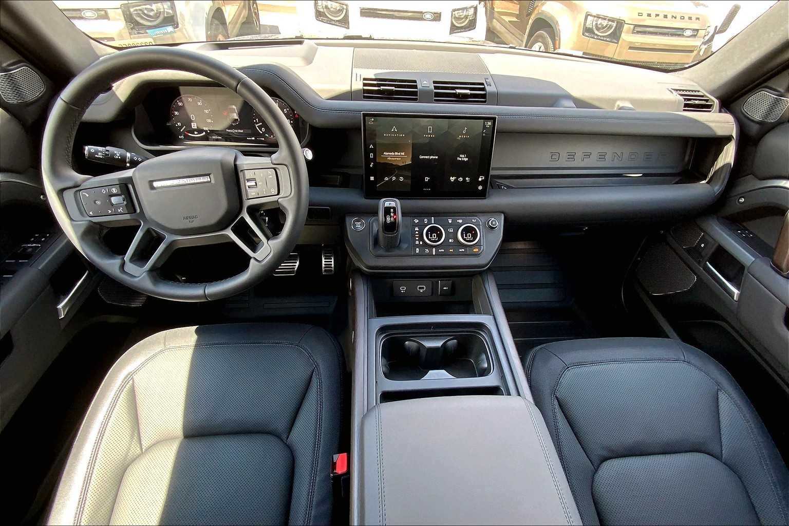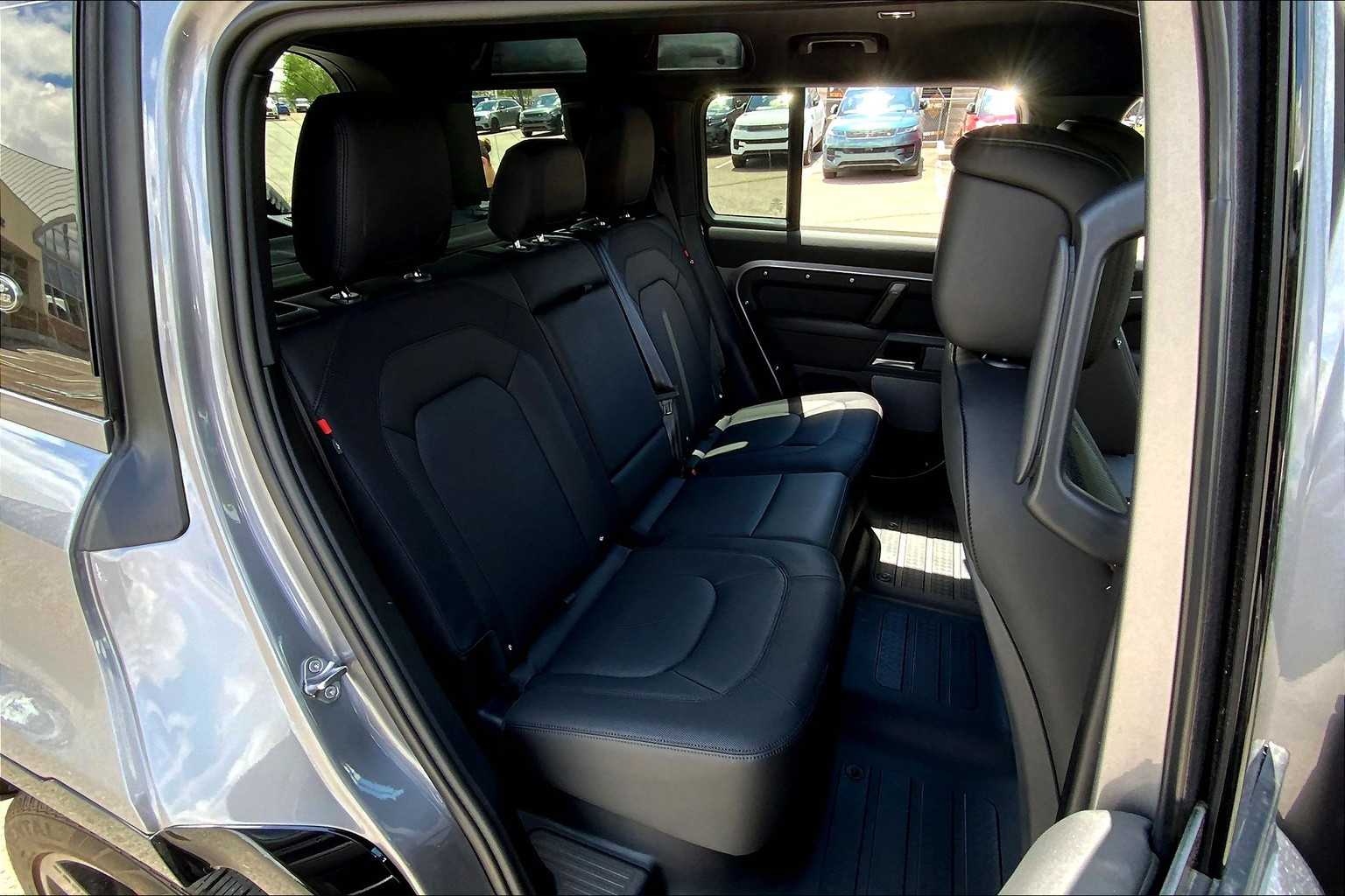 5 spoke, Tires: 22 All Season, gloss black fender vents, Narvik black hood checkerplate, gloss black Defender script and Narvik black front and rear skidpans, Gloss Black Front Grille, Tow Hitch Receiver, Advanced Tow Assist, Refrigerated Center Console, Premium Cabin Lighting, deep-sided rubber mats, loadspace rubber mat and cargo carrier, FRONT UNDERSHIELD, 3-ZONE CLIMATE CONTROL, BODY COLORED SPARE WHEEL COVER, CABIN AIR PURIFICATION PLUS, WI-FI ENABLED W/DATA PLAN, DINAMICA WRAPPED STEERING WHEEL, BLACK EXPOSED REAR RECOVERY EYES, silver wheel locks and valve caps, BLACK CONTRAST SIGNATURE GRAPHIC, AIR QUALITY SENSOR, EIGER GREY METALLIC, EBONY/EBONY, RESIST & ROBUSTEC SEATS, subwoofer, Bluetooth connectivity, voice control, Sirius XM satellite radio and HD Radio, PIVI Pro, Android Auto, Apple CarPlay, wireless device charging, remote, connected navigation pro and online pack w/data plan.