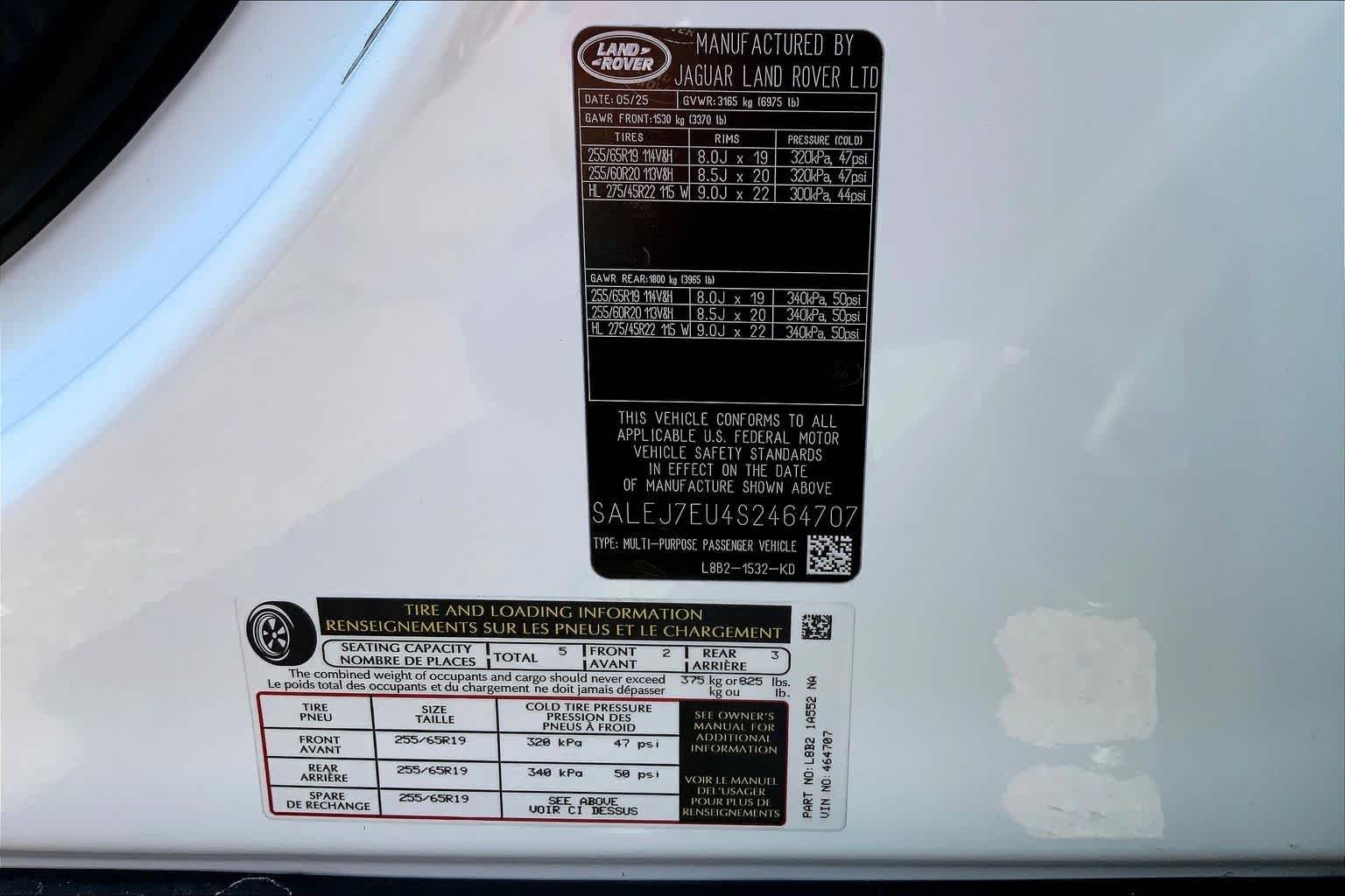 OFF-ROAD PACK: Wade Sensing, Off-Road Tires, Electronic Active Differential, torque vectoring by braking, AIR SUSPENSION PACK: Adaptive Dynamics, Electronic Air Suspension, BLACK CONTRAST ROOF, WHEEL ARCH PROTECTION PACK, COMFORT & CONVENIENCE PACK: Configurable Cabin Lighting, Front Center Console Refrigerator Compartment, PREMIUM INTERIOR PROTECTION & STORAGE PACK (5 SEAT), TOW HITCH RECEIVER, BLACK EXTERIOR PACK, WHEELS: 19 GLOSS BLACK STYLE 6010: 6 spoke, BLACK WHEEL PROTECTION PACK: wheel locks (including spare wheel) and valve stem caps, 40:20:40 FOLDING HEATED RR SEATS W/CENTER ARMREST, EBONY MORZINE HEADLINING, 3-ZONE CLIMATE CONTROL, CABIN AIR PURIFICATION PLUS, EXTERIOR PROTECTION PACK, BLACK EXPOSED REAR RECOVERY EYES, DARK GREY POWDER COAT CROSS CAR BEAM, BLACK CONTRAST SIGNATURE GRAPHIC W/INTERIOR STORAGE, AIR QUALITY SENSOR, EMERGENCY PACK, EBONY, RESIST SEAT TRIM. Buy with confidence at Group 1 where every used vehicle, up to 175,000 miles, comes with a one month 1,000-mile limited warranty along with a 3-day 250-mile return policy. Every vehicle is priced to market and includes a Carfax History Report.
