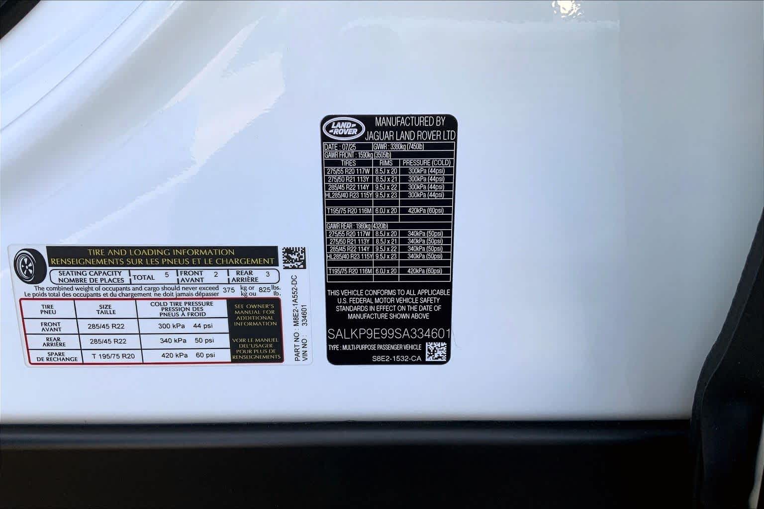 - VIN : SALKP9E99SA334601