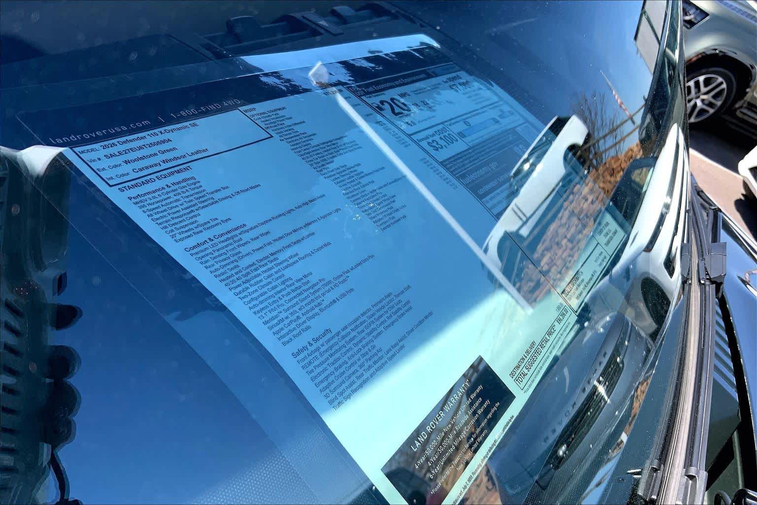 ROOF PACK 110: Included black expedition roof rack and black deployable roof ladder, BLACK FIXED SIDE STEPS, OFF-ROAD PACK: Wade Sensing, All-Terrain Tires, Electronic Active Differential, torque vectoring by braking, PREMIUM UPGRADE INTERIOR PACK: Leather Steering Wheel, 14-Way Heated & Cooled Electric Memory Front Seats, 4-way manual headrests, Leather Gearshift, Extended Leather Upgrade, AIR SUSPENSION PACK: Adaptive Dynamics, Electronic Air Suspension, EXTENDED BLACK EXTERIOR PACK, HEAD-UP DISPLAY, WOOLSTONE GREEN METALLIC, CARAWAY/EBONY, WINDSOR LEATHER SEAT TRIM, FRONT CENTER CONSOLE REFRIGERATOR COMPARTMENT, CLEARSIGHT INTERIOR REAR VIEW MIRROR, 40:20:40 FOLDING HEATED RR SEATS W/CENTER ARMREST, COLD CLIMATE PACKAGE: Heated Windscreen, Headlight Power Wash, CABIN AIR PURIFICATION PLUS, BODY-COLORED SPARE WHEEL COVER, 3-ZONE CLIMATE CONTROL, REAR SEAT CONVENIENCE PACK: 2x click and go and click and hook, WHEEL PROTECTION PACK: silver wheel locks and valve stem caps, ADAPTIVE OFF-ROAD CRUISE CONTROL, DARK GREY POWDER COAT CROSS CAR BEAM, AIR QUALITY SENSOR, EMERGENCY PACK, HANDOVER PACK. Buy with confidence at Group 1 where every used vehicle, up to 175,000 miles, comes with a one month 1,000-mile limited warranty along with a 3-day 250-mile exchange policy. Some exclusions may apply, see Buyers Guide for specifics. Every vehicle is priced to market and includes a Carfax History Report.