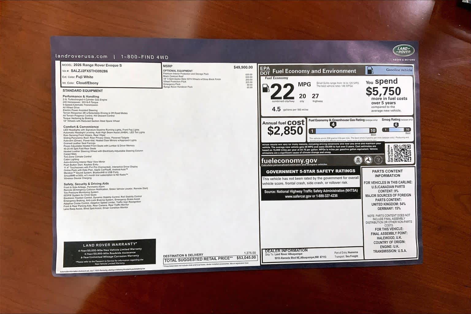 2026 Land Rover Range Rover Evoque Core S at Land Rover Albuquerque