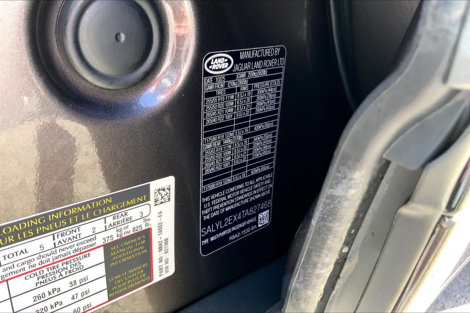 CHARENTE GREY PREMIUM METALLIC, BLACK EXTERIOR STYLE PACK: Gloss Black Side Vents, Satin/Gloss Black Front Bumper, Front & Rear Gloss Black Range Rover Script, Gloss Black Rear Bumper Lower Valance, Gloss Black Front Grille & Inner Surround, Black Brake Calipers, Gloss Black Lower Valance, BLACK CONTRAST ROOF, WHEELS: 20 10 SPOKE GLOSS BLACK (STYLE 1089), RADIO: MERIDIAN 3D SURROUND SOUND SYSTEM, HEATED & COOLED FRONT SEATS, EMERGENCY PACK, CLOUD, GRAINED LEATHER SEAT TRIM. Buy with confidence at Group 1 where every used vehicle, up to 175,000 miles, comes with a one month 1,000-mile limited warranty along with a 3-day 250-mile return policy. Some exclusions may apply, see Buyers Guide for specifics. Every vehicle is priced to market and includes a Carfax History Report.