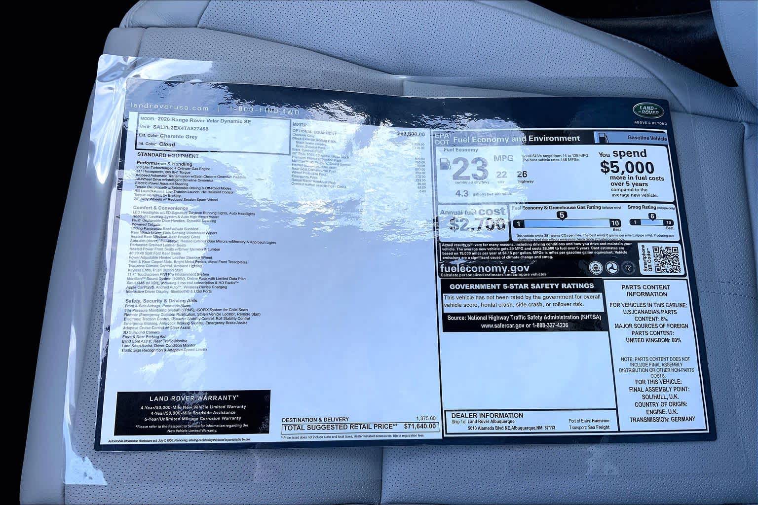 2026 Land Rover Range Rover Velar Dynamic SE at Land Rover Albuquerque