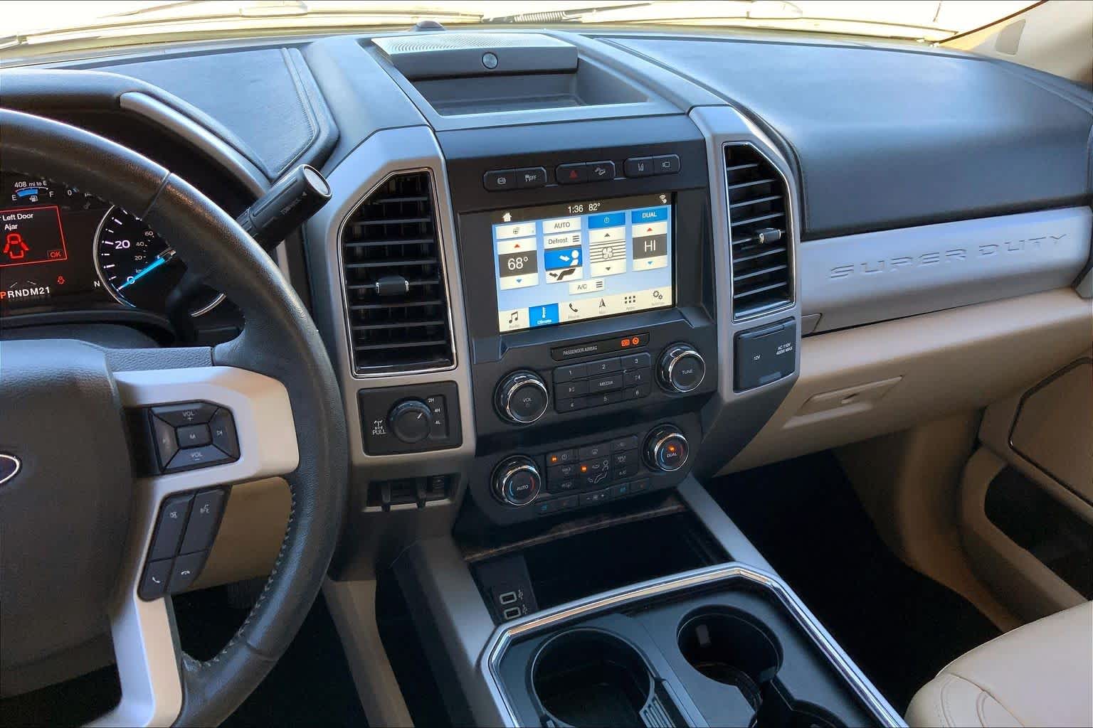 ENGINE: 6.7L 4V OHV POWER STROKE V8 TURBO DIESEL B20: manual push-button engine-exhaust braking and intelligent oil-life monitor, Extra Heavy-Duty 220 Amp Alternator, 34 Gallon Fuel Tank, 3.31 Axle Ratio, Dual 78-AH 750 CCA Batteries, LARIAT ULTIMATE PACKAGE: Power Heated/Cooled Driver Seat w/Memory, PowerScope Trailer Tow Mirrors w/Memory, Automatic High Beam, rain-sensing windshield wipers, EASY ENTRY/Exit Memory Drivers Seat Feature, Tailgate Step & Handle, LED Box Lighting, LED Center High-Mounted Stop Lamp (CHMSL), Intelligent Access w/Push-Button Start, Power Heated/Cooled Passenger Seat, Voice-Activated Navigation, HD and SiriusXM Traffic and Travel Link, NOTE: SiriusXM Traffic and Travel Link includes a, Services are not available in Alaska and Hawaii, Memory Power-Adjustable Pedals, Remote Start System, Ambient Lighting - Fixed Color, Power Telescoping/Tilt Steering Wheel/Column, heat, memory and audio controls, Remote Tailgate Release, TOW TECHNOLOGY BUNDLE: Ultimate Trailer Tow Camera System, 360 degree camera system and trailer reverse guidance, Display appears in center-stack screen, NOTE: Does not include customer placed trailer camera, Rear CHMSL Camera, Display in center stack screen, LED Center High-Mounted Stop Lamp (CHMSL) w/cargo light and rear video camera, Adaptive Steering, Lane-Keeping Alert, TWIN PANEL POWER MOONROOF: map lights and moonroof switches, WHEELS: 20 BRIGHT MACHINED CAST ALUMINUM: magnetic painted pockets and bright hub covers/center ornaments, 6 ANGULAR CHROME EXTENDED RUNNING BOARDS, BLIND SPOT INFORMATION SYSTEM (BLIS) cross-traffic alert and trailer tow (BLIS sensor in taillamp), ELECTRONIC-LOCKING W/3.55 AXLE RATIO, UNIVERSAL GARAGE DOOR OPENER (UGDO), TRANSMISSION: TORQSHIFT 6-SPEED AUTOMATIC (6R140), SelectShift.