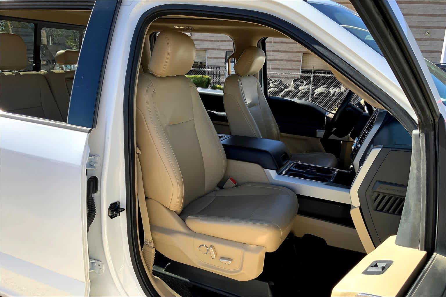 Non-Smoker vehicle, Originally bought here, Leather Seats, 4x4, Premium Sound System, iPod/MP3 Input, Onboard Communications System Ford LARIAT with White Platinum Metallic Tri-Coat exterior and Medium Light Camel interior features a 8 Cylinder Engine with 450 HP at 2800 RPM*.