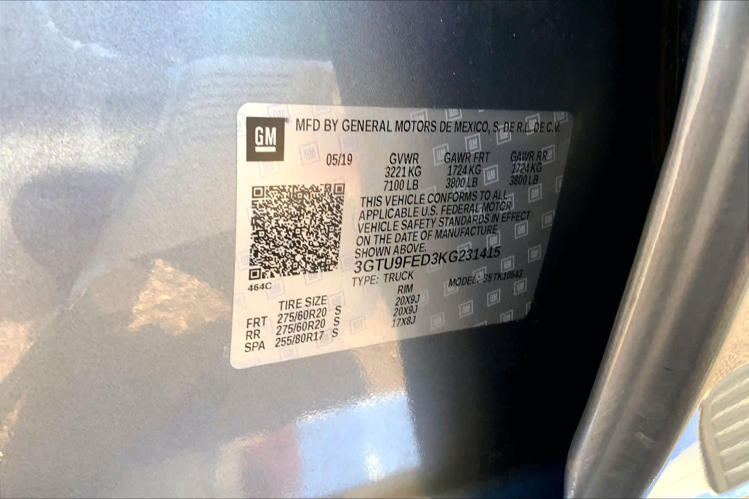 - VIN : 3GTU9FED3KG231415