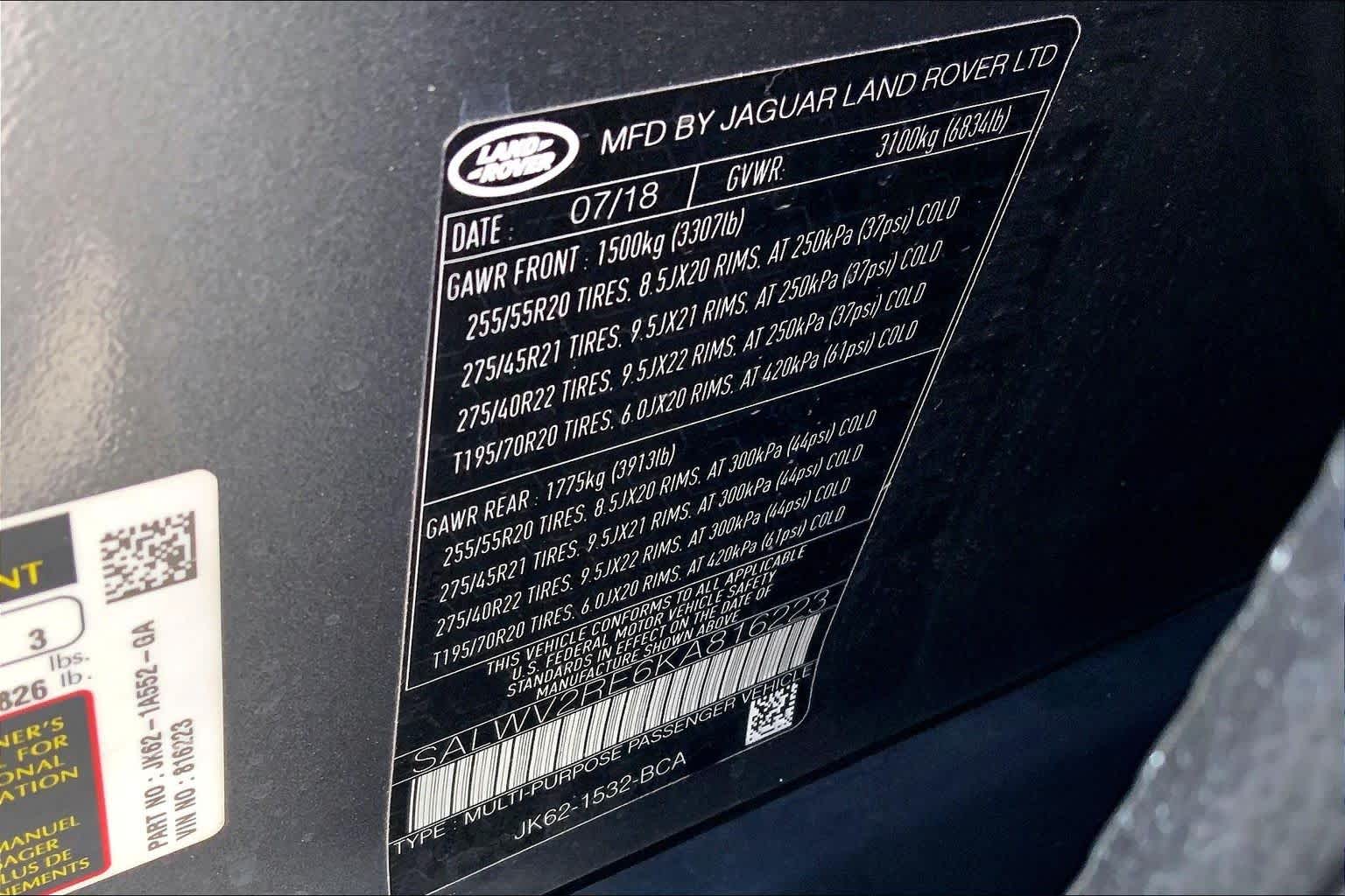 - VIN : SALWV2RE6KA816223