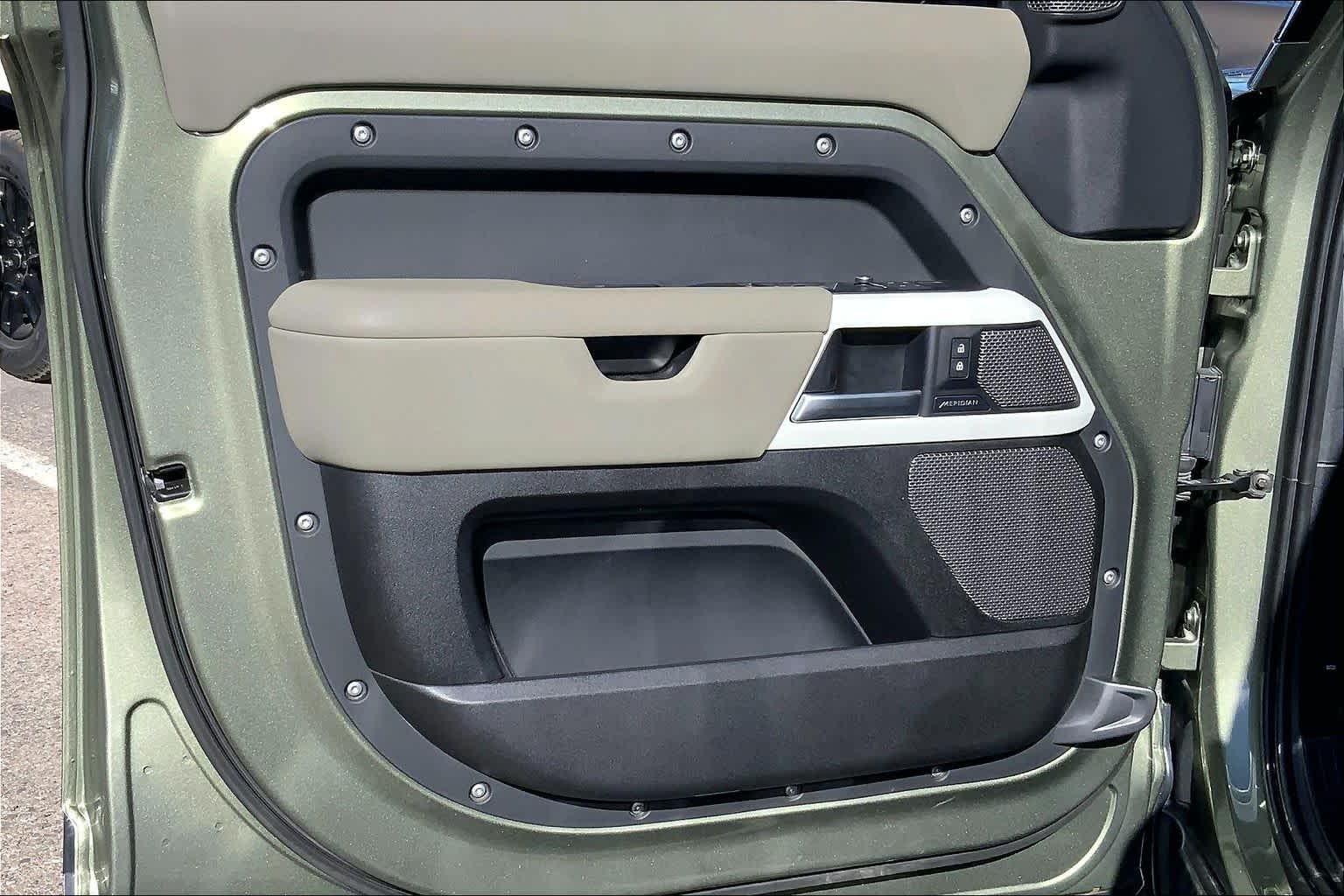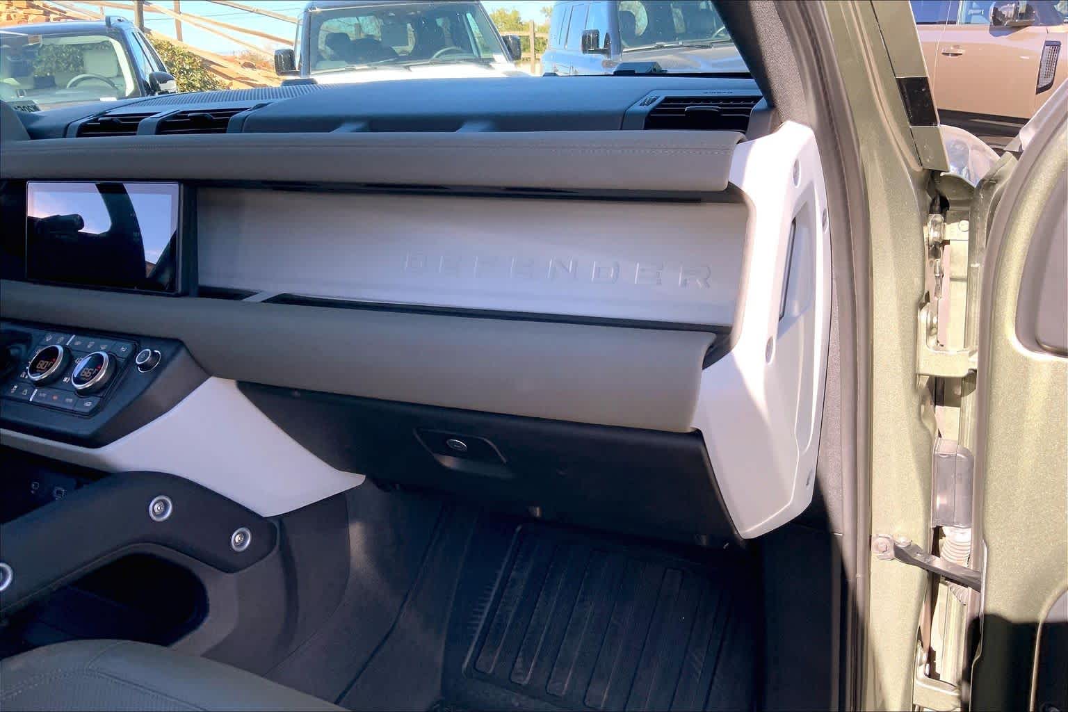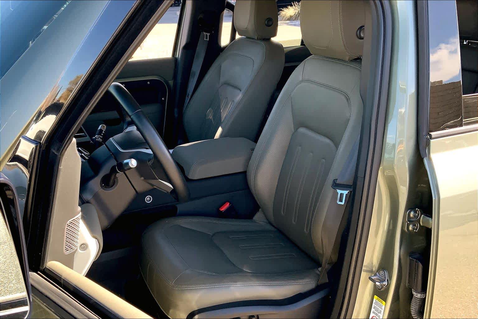 OPENING PANORAMIC SUNROOF, Domestic Plug Socket, Off-Road Tires, Electronic Active Differential, torque vectoring by braking, rear cooling assist, BLACK CONTRAST ROOF, all terrain progress control, Terrain Response 2 and configurable Terrain Response, PANGEA GREEN METALLIC, Heated Windscreen, Heated Washer Jets, Heated Steering Wheel, Headlight Power Wash, TRAILER HITCH W/ELECTRICAL CONNECTOR, gloss black fender vents, Narvik black hood checkerplate and gloss black Defender script, Gloss Black Front Grille, deep-sided rubber mats, loadspace rubber mat and cargo carrier, 2-way manual headrests, 40:20:40 folding and center armrest, 5 spoke w/gloss sparkle silver finish, CABIN AIR IONIZATION, robust woven textile accent.
