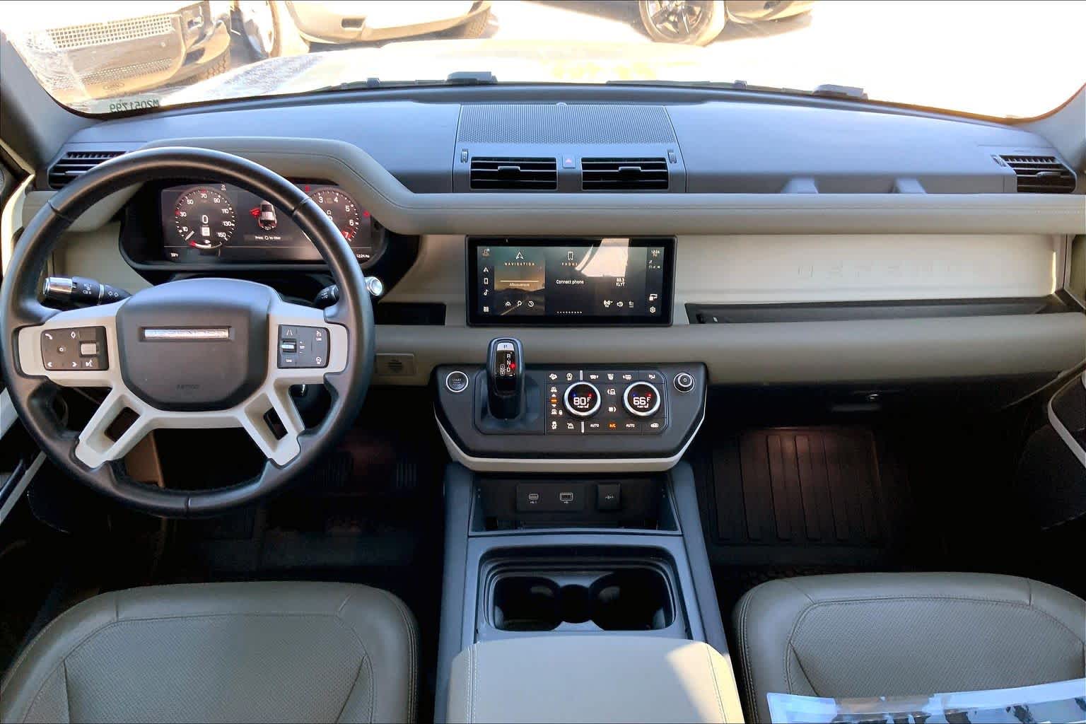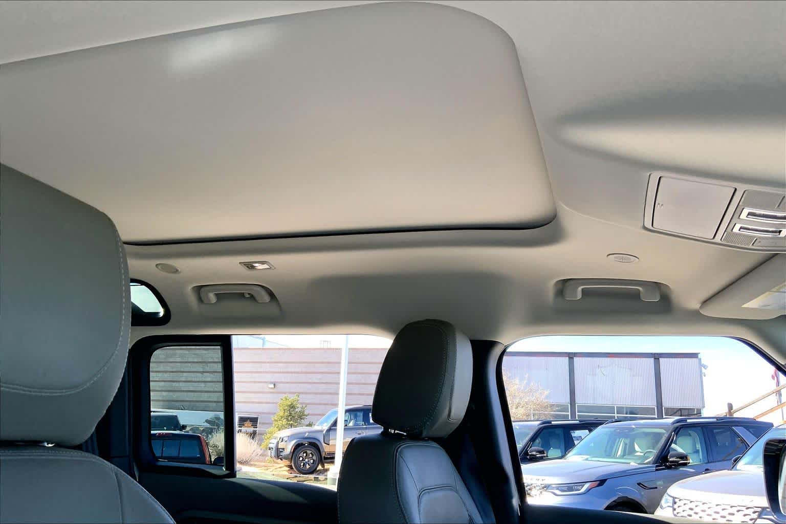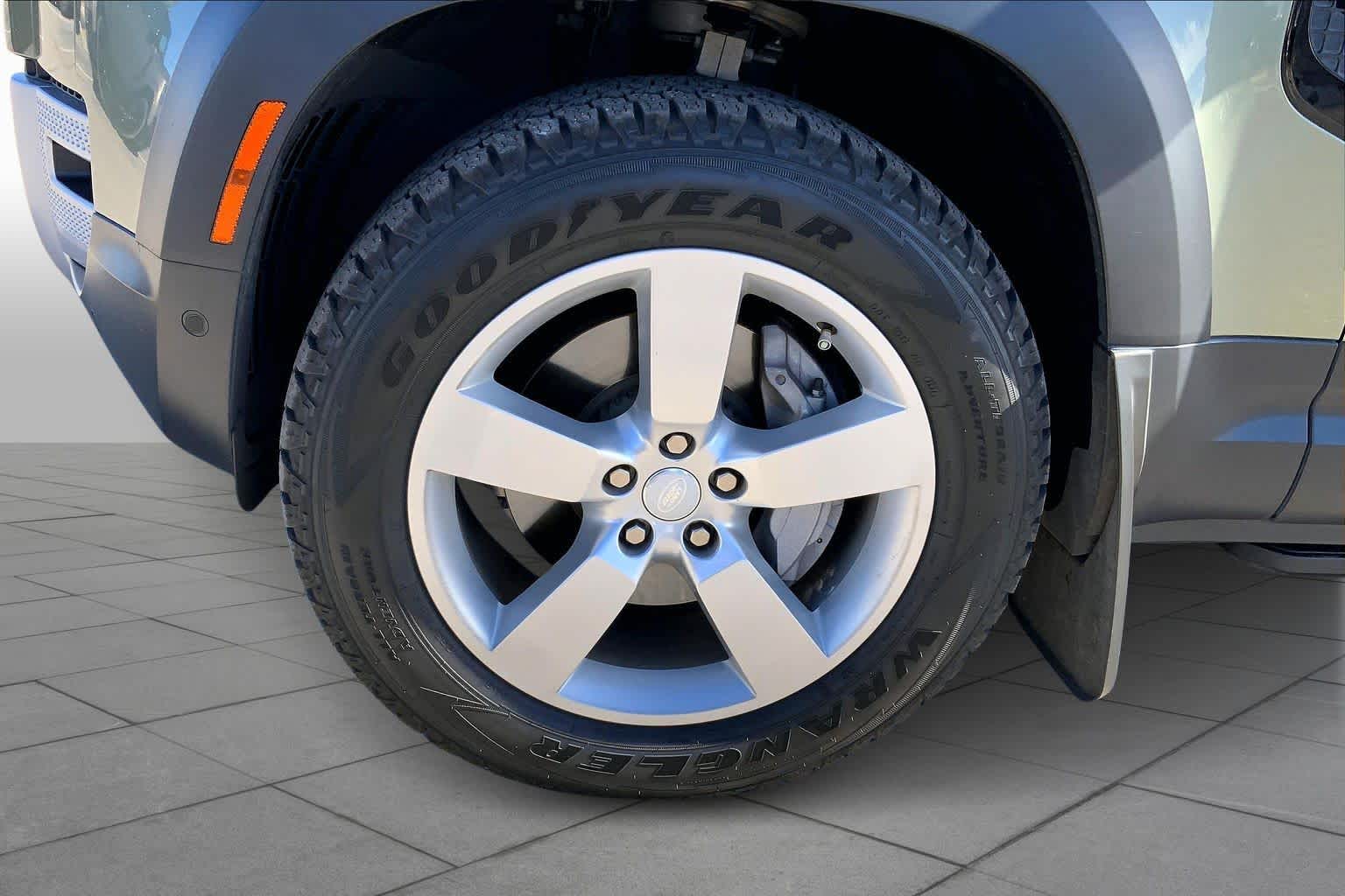 OPENING PANORAMIC SUNROOF, Domestic Plug Socket, Off-Road Tires, Electronic Active Differential, torque vectoring by braking, rear cooling assist, BLACK CONTRAST ROOF, all terrain progress control, Terrain Response 2 and configurable Terrain Response, PANGEA GREEN METALLIC, Heated Windscreen, Heated Washer Jets, Heated Steering Wheel, Headlight Power Wash, TRAILER HITCH W/ELECTRICAL CONNECTOR, gloss black fender vents, Narvik black hood checkerplate and gloss black Defender script, Gloss Black Front Grille, deep-sided rubber mats, loadspace rubber mat and cargo carrier, 2-way manual headrests, 40:20:40 folding and center armrest, 5 spoke w/gloss sparkle silver finish, CABIN AIR IONIZATION, robust woven textile accent.