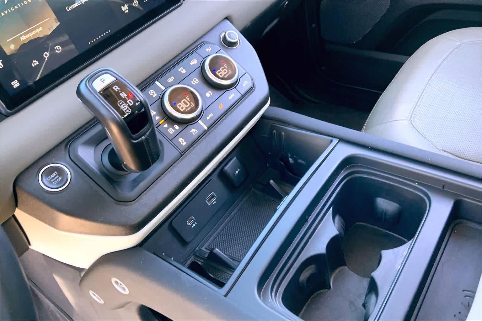 OPENING PANORAMIC SUNROOF, Domestic Plug Socket, Off-Road Tires, Electronic Active Differential, torque vectoring by braking, rear cooling assist, BLACK CONTRAST ROOF, all terrain progress control, Terrain Response 2 and configurable Terrain Response, PANGEA GREEN METALLIC, Heated Windscreen, Heated Washer Jets, Heated Steering Wheel, Headlight Power Wash, TRAILER HITCH W/ELECTRICAL CONNECTOR, gloss black fender vents, Narvik black hood checkerplate and gloss black Defender script, Gloss Black Front Grille, deep-sided rubber mats, loadspace rubber mat and cargo carrier, 40:20:40 folding and center armrest, 5 spoke w/gloss sparkle silver finish, CABIN AIR IONIZATION. Buy with confidence at Group 1 where every used vehicle, up to 175,000 miles, comes with a one month 1,000-mile limited warranty along with a 3-day 250-mile return policy. Every vehicle is priced to market and includes a Carfax History Report.