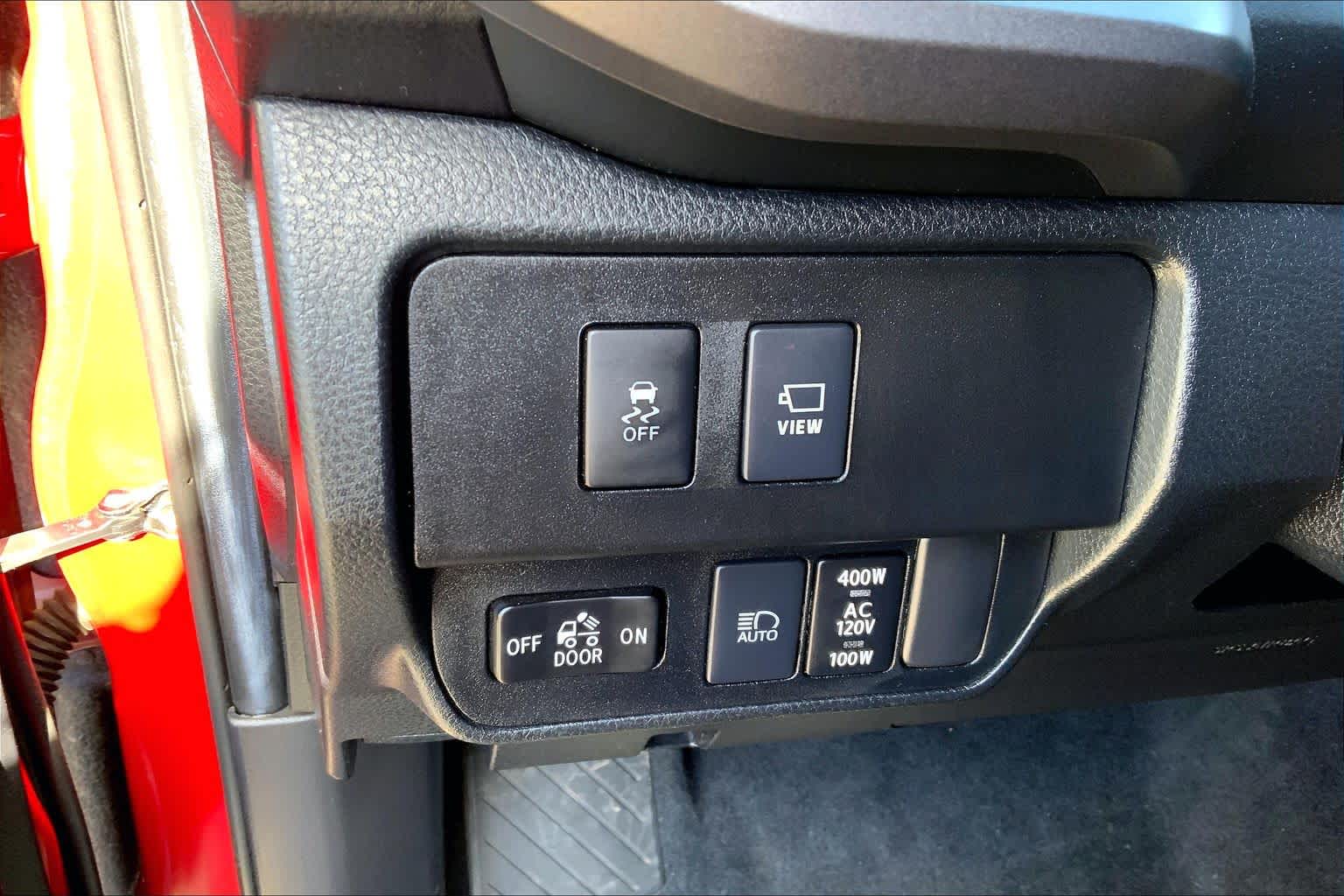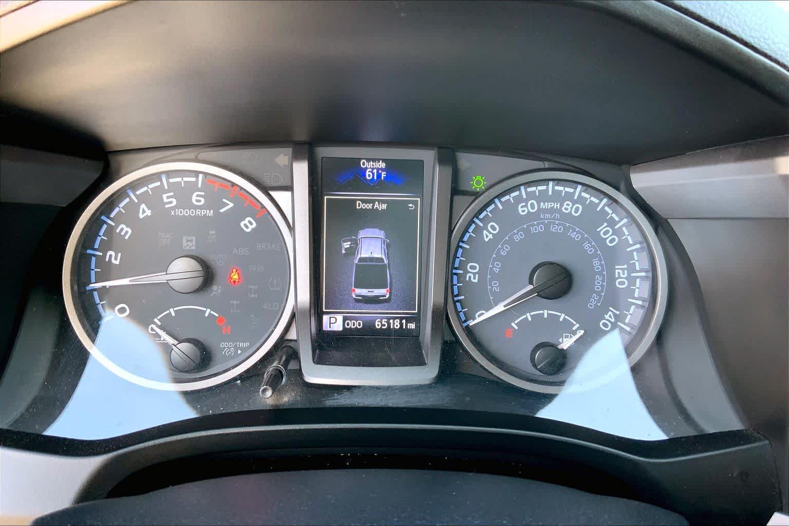 leather shift lever and knob, TRD upgrade package option 3 and Sport grade package, Automatic Headlights, Radio: Entune Premium JBL AM/FM/CD w/Nav & App Ste, MP3/WMA playback capability, 6 JBL speakers w/subwoofer, 8 high-resolution touch-screen display w/split screen, auxiliary audio jack, USB media port, iPod connectivity and control, Siri Eyes Free, advanced voice recognition, Bluetooth hands-free phone capability, phone book access and music streaming, cache radio, HD Radio, HD predictive traffic and Doppler weather overlay, SiriusXM satellite radio w/complimentary SiriusXM All Access 3-month trial subscription included and integrated backup camera display, Power Tilt/Slide Moonroof, Heated Front Seats, Auto-Dimming Rearview Mirror w/HomeLink, ADVANCED TECHNOLOGY PACKAGE Rear Parking Assist Sonar, Panoramic View Monitor, Blind Spot Monitor w/Rear Cross Traffic Alert, Mesh Front Grille, PREDATOR TUBE STEPS (TMS), LED FOG LAMP W/BLACK BEZEL, ALL WEATHER FLOOR LINER & DOOR SILL PROTECTOR (TMS), BLACK/GUN METAL, LEATHER SEAT TRIM.