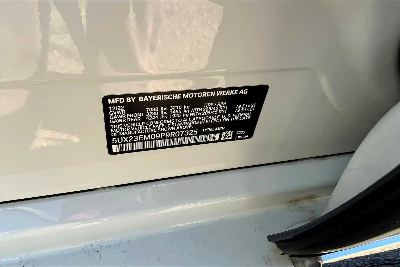 - VIN : 5UX23EM09P9R07325