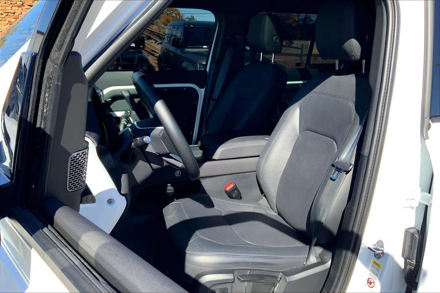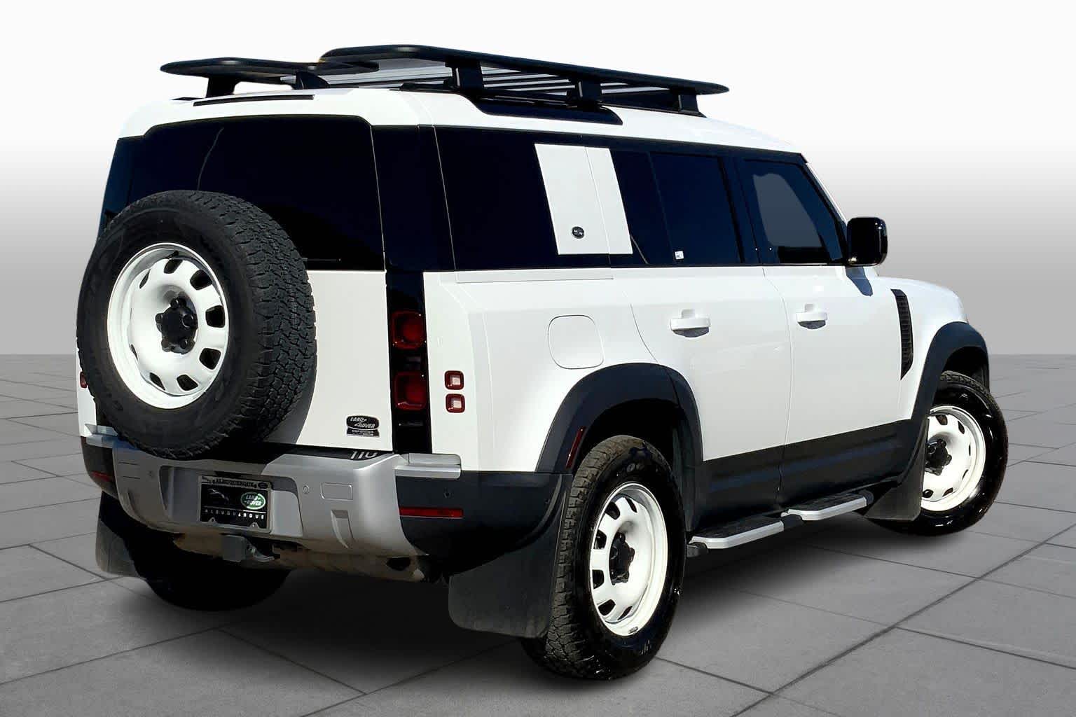 expedition roof rack and deployable roof ladder, all terrain progress control, Terrain Response 2 and configurable Terrain Response, Tow Hitch Receiver, Advanced Tow Assist, OPENING PANORAMIC SUNROOF, air suspension and adaptive dynamics, Automatic Headlight Levelling, FIXED SIDE STEPS, Domestic Plug Socket, Off-Road Tires, Electronic Active Differential, torque vectoring by braking, A-FRAME PROTECTION BAR, rear cooling assist, INTEGRATED AIR COMPRESSOR, WHEEL ARCH EXTENSIONS, Heated Windscreen, Heated Washer Jets, Heated Steering Wheel, Headlight Power Wash, gloss black fender vents, Narvik black hood checkerplate and gloss black Defender script, Gloss Black Front Grille, PREMIUM LED HEADLIGHTS W/SIGNATURE DRL, 3-ZONE CLIMATE CONTROL W/REAR COOLING ASSIST, OFF-ROAD TIRES, classic mudflaps, CABIN AIR IONIZATION W/PM 2.5 FILTER, Brushed finish, FOG LIGHTS, LOCKING WHEEL NUTS, AIR QUALITY SENSOR, 8 split-spoke, Tires: 18 All-Season, 18 FULL-SIZE STEEL SPARE WHEEL, FUJI WHITE, robust woven textile seat facings. Buy with confidence at Group 1 where every used vehicle, up to 175,000 miles, comes with a one month 1,000-mile limited warranty along with a 3-day 250-mile return policy. Every vehicle is priced to market and includes a Carfax History Report.