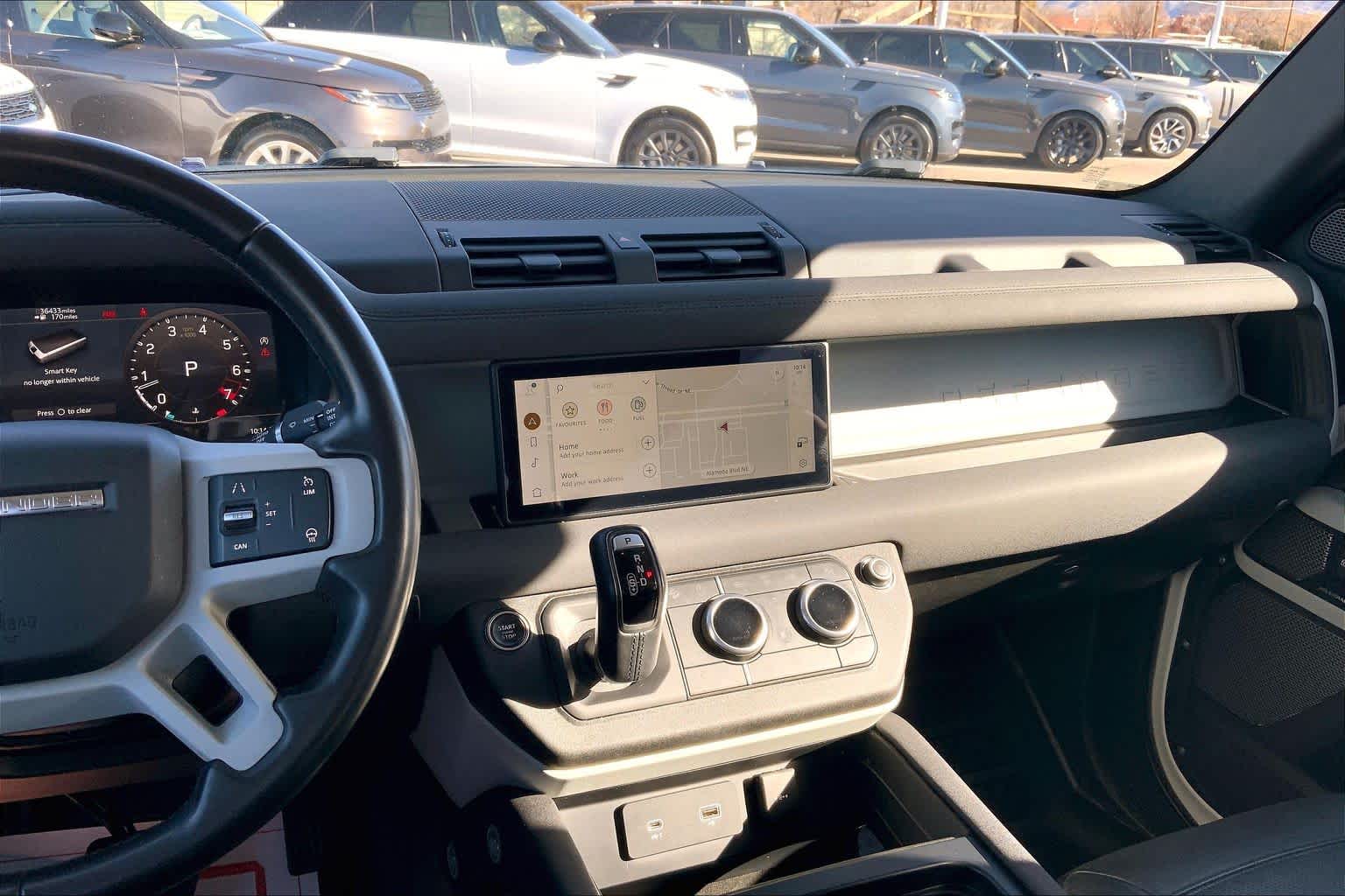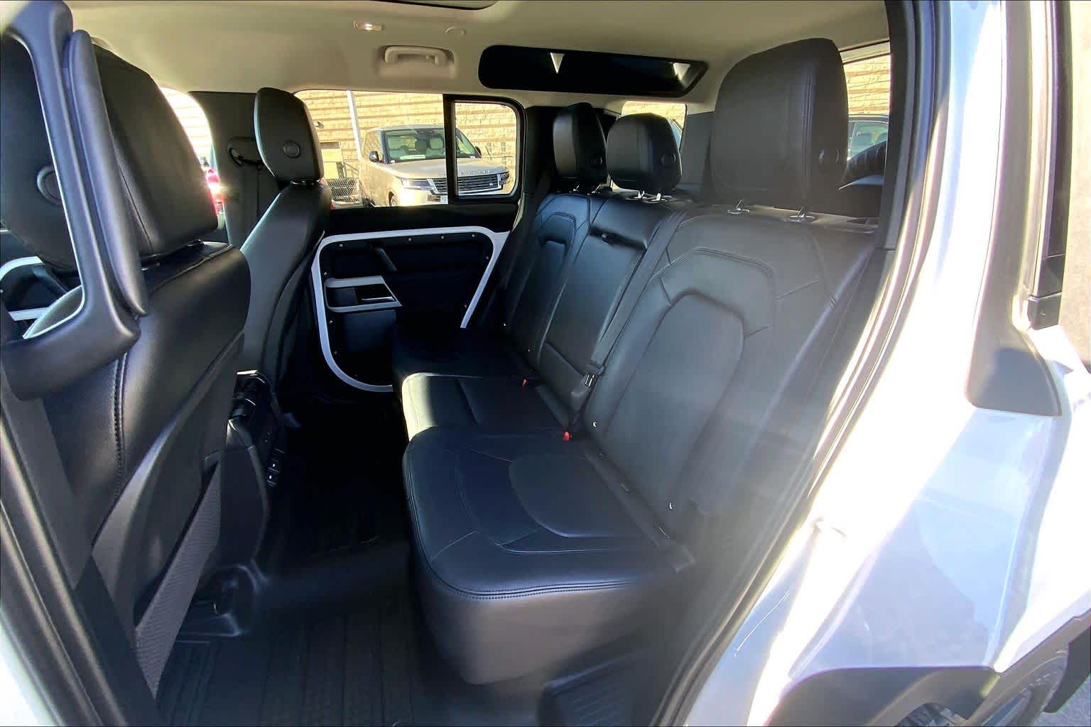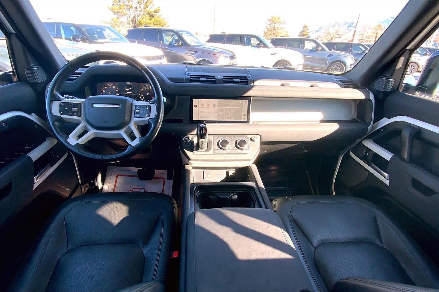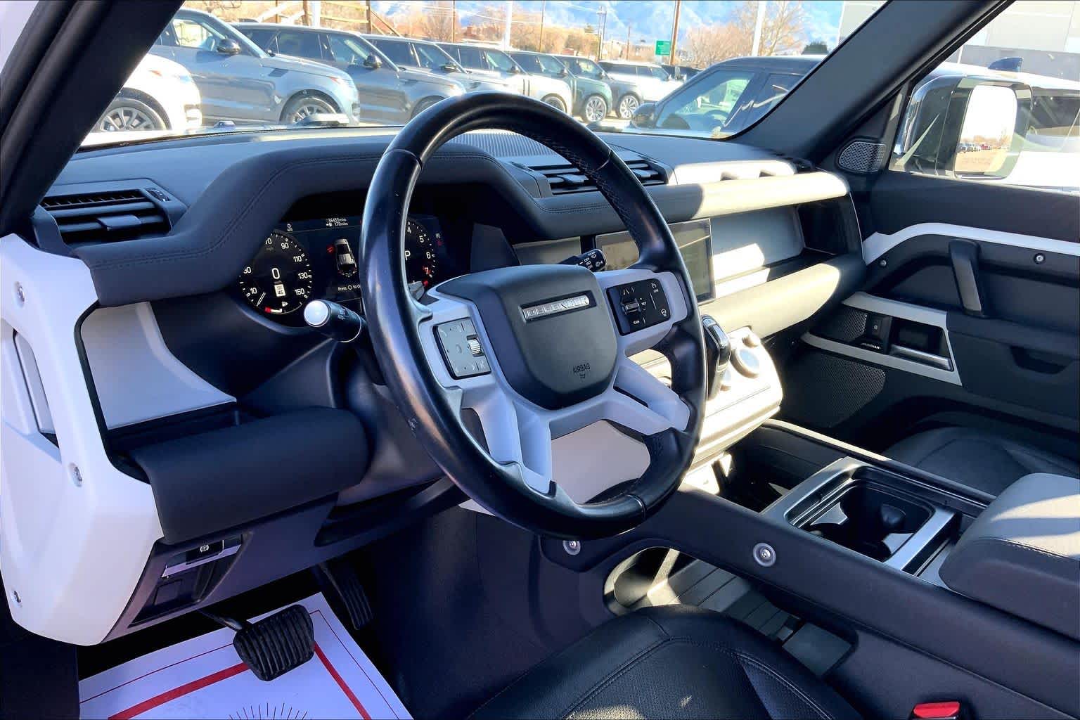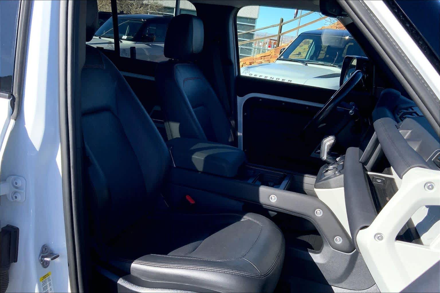 5 spoke, Tires: 20 All-Season, OPENING PANORAMIC SUNROOF, Domestic Plug Socket, Off-Road Tires, Electronic Active Differential, torque vectoring by braking, Twin Front Cupholders w/Cover, Premium Cabin Lighting, Refrigerated Center Console, BLACK CONTRAST ROOF, Heated Windscreen, Heated Washer Jets, Heated Steering Wheel, Headlight Power Wash, gloss black fender vents, Narvik black hood checkerplate and gloss black Defender script, Gloss Black Front Grille, deep-sided rubber mats, loadspace rubber mat, cargo carrier and sunshade, 40:20:40 FOLDING HEATED RR SEATS W/CENTRE ARMREST, PREMIUM LED HEADLIGHTS W/SIGNATURE DRL. Buy with confidence at Group 1 where every used vehicle, up to 175,000 miles, comes with a one month 1,000-mile limited warranty along with a 3-day 250-mile return policy. Some exclusions may apply, see Buyers Guide for specifics. Every vehicle is priced to market and includes a Carfax History Report.