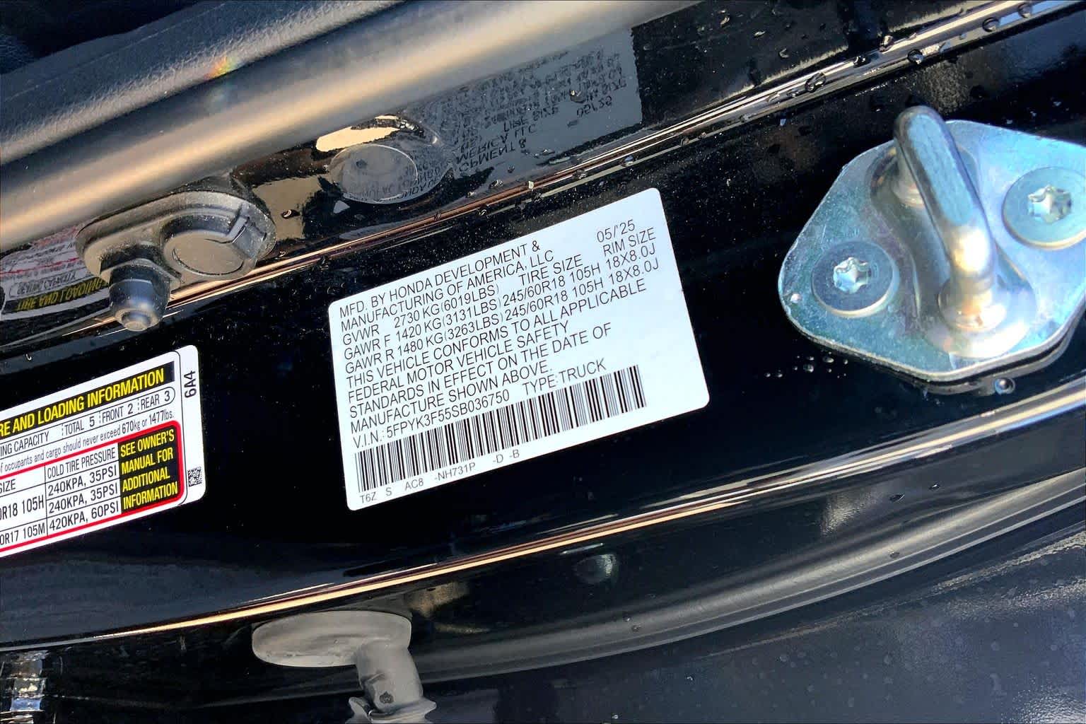 - VIN : 5FPYK3F55SB036750