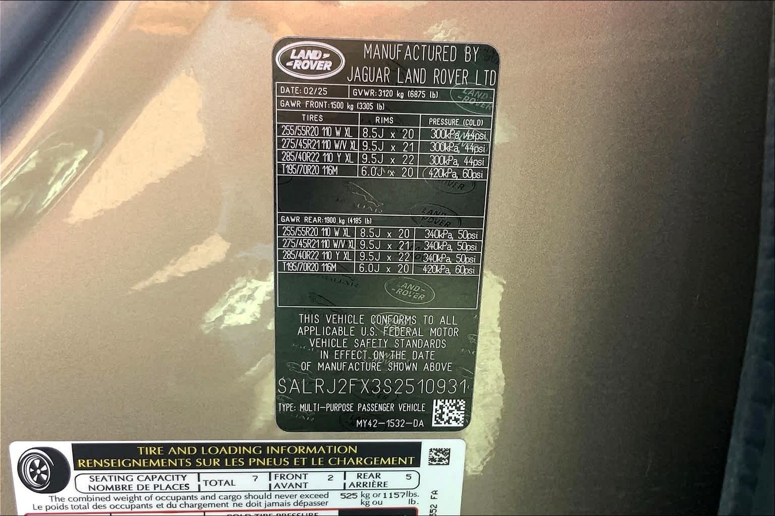 - VIN : SALRJ2FX3S2510931