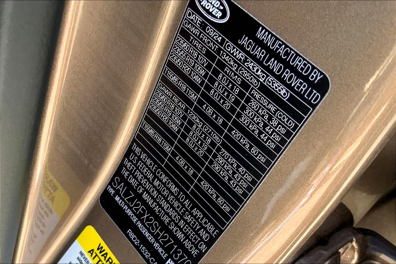 - VIN : SALZJ2FX2SH271370