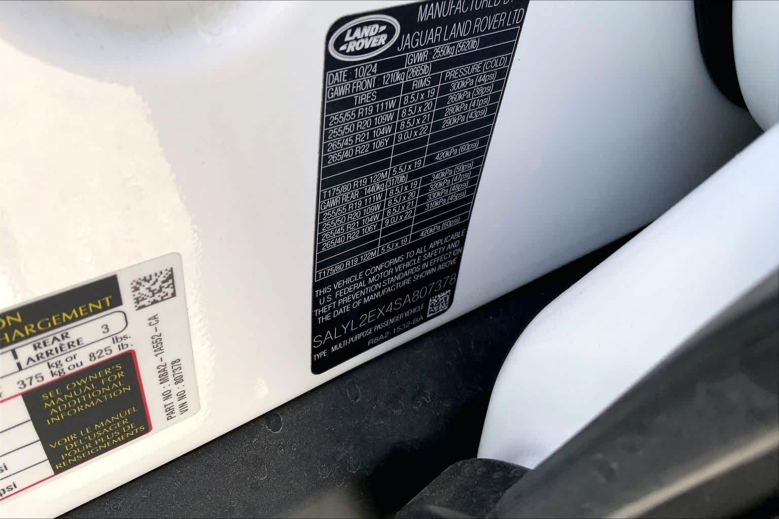 - VIN : SALYL2EX4SA807378