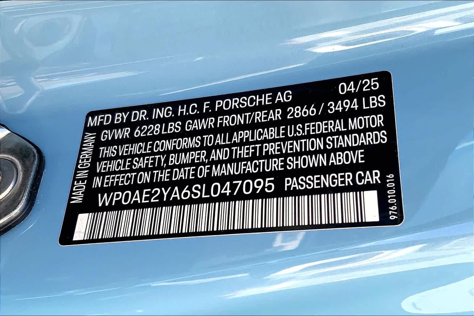 - VIN : WP0AE2YA6SL047095